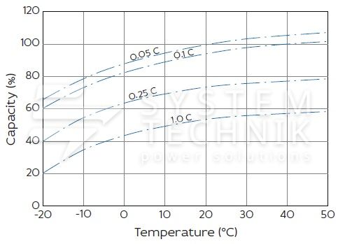 - Срок хранения без подзаряда: 6 мес. при 25°C;