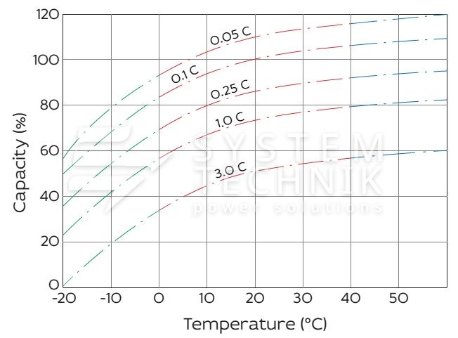 - Срок хранения без подзаряда: 6 месяцев при 25ºС;