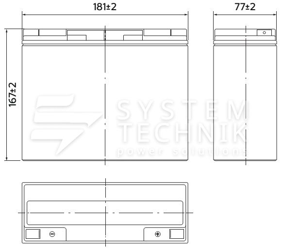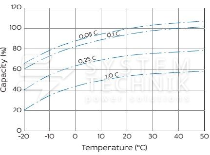 - Срок хранения без подзаряда: 6 мес. при 25°C;