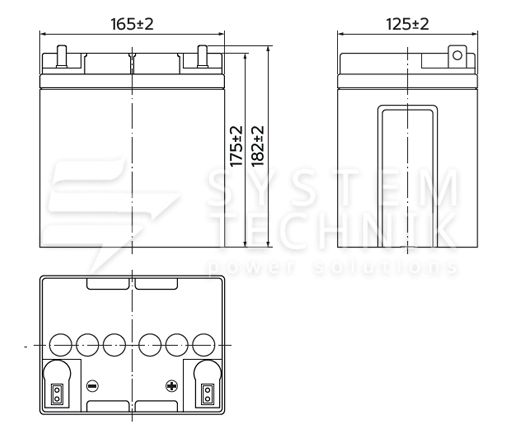 - Срок хранения без подзаряда: 6 мес. при 25°C;