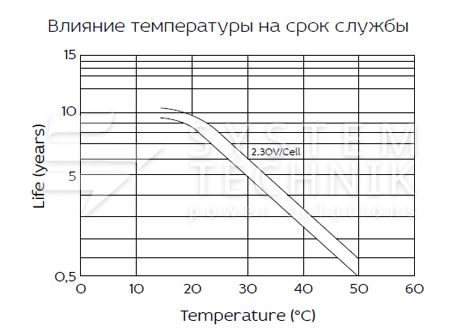 - Срок хранения без подзаряда: 6 мес. при 25°C;