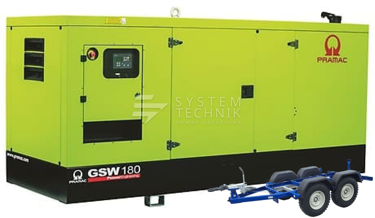 - Дизельный генератор Pramac GSW 180 P 230V 3Ф В кожухе на прицепе