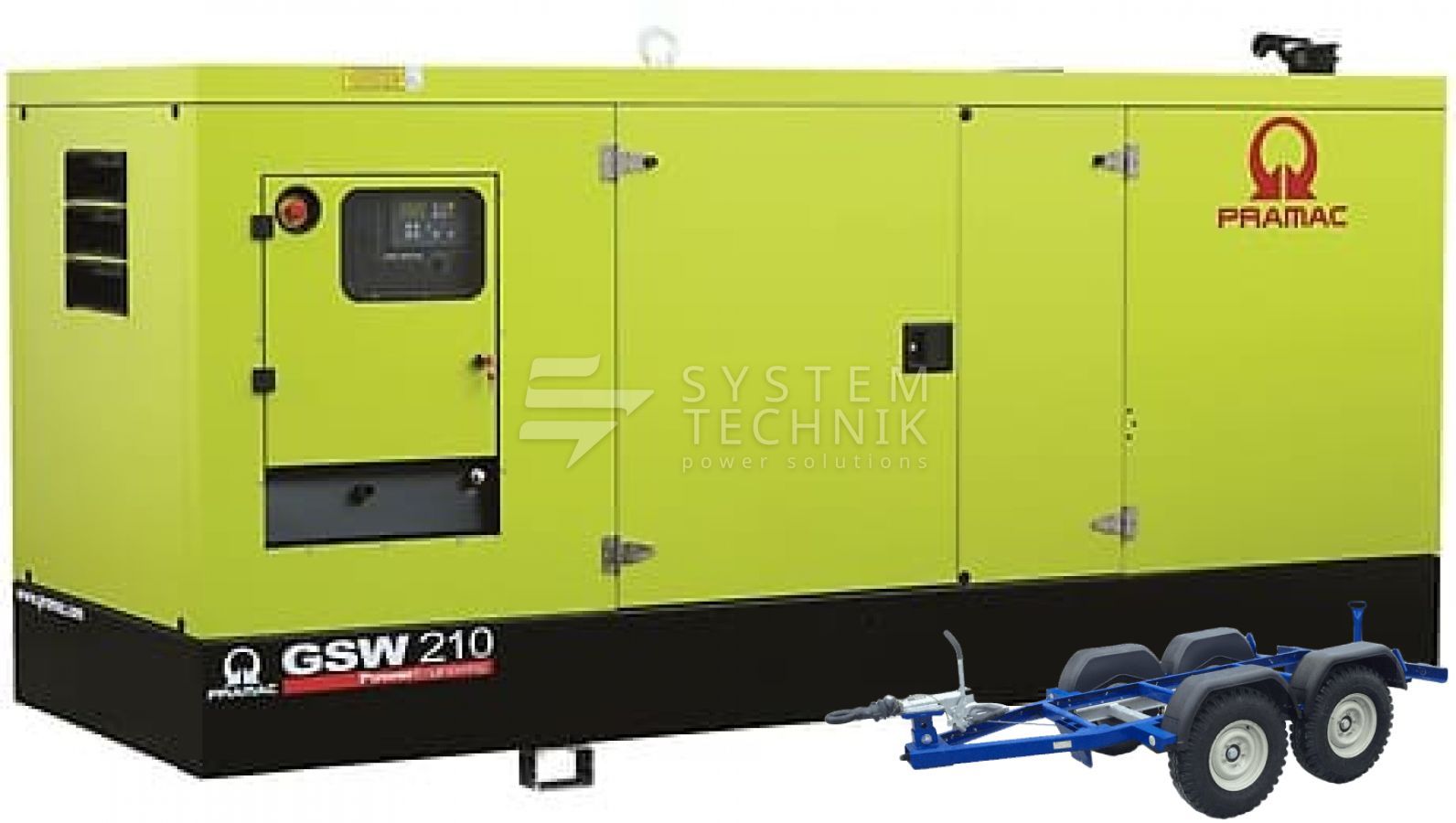 - Дизельный генератор Pramac GSW 210 P 230V 3Ф В кожухе на прицепе