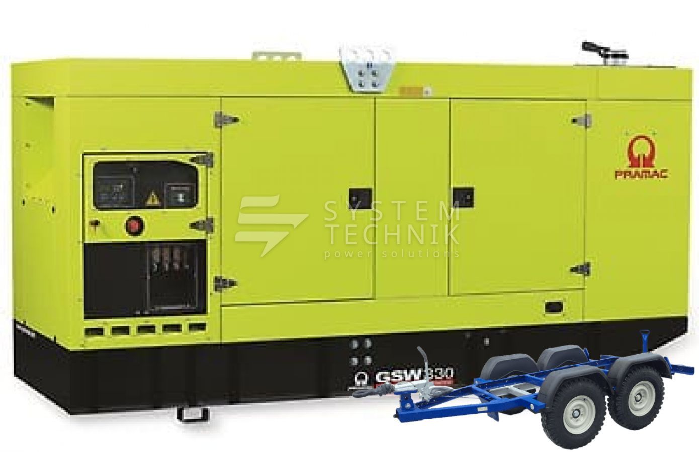 - Дизельный генератор Pramac GSW 330 DO 440V В кожухе на прицепе