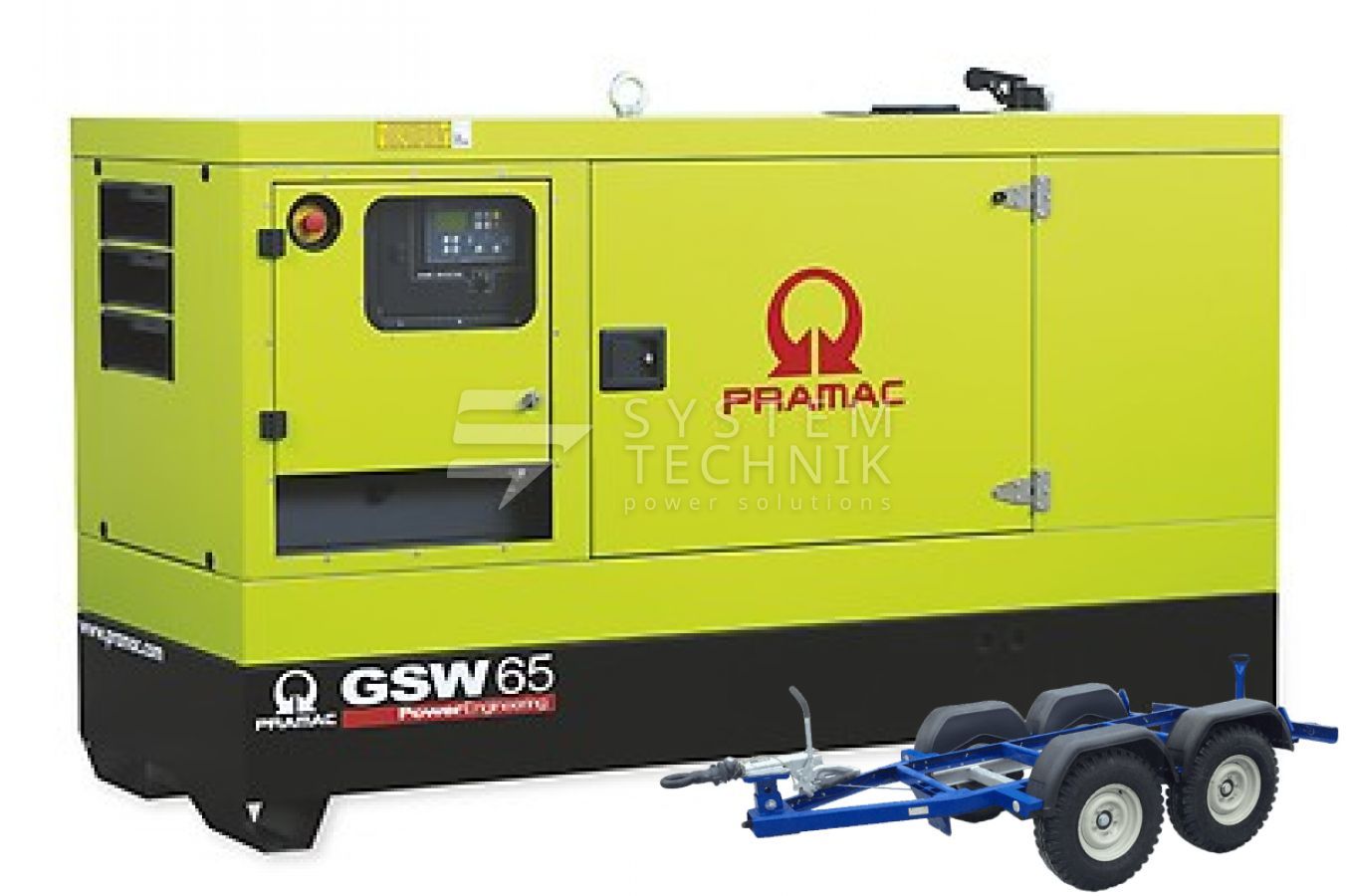 - Дизельный генератор Pramac GSW 65 I В кожухе на прицепе