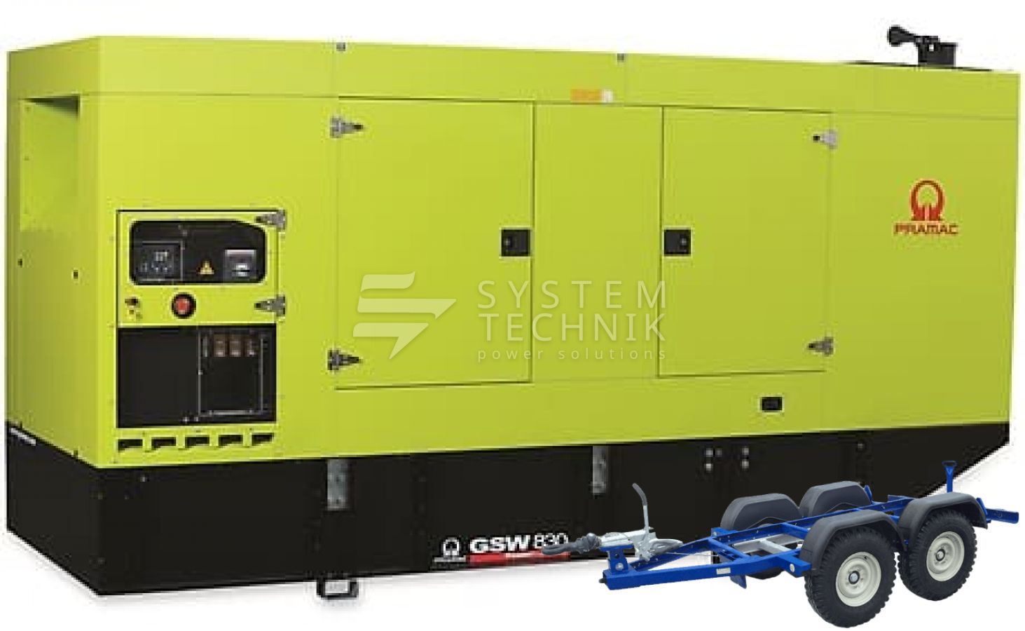 - Дизельный генератор Pramac GSW 830 DO 440V В кожухе на прицепе